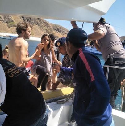 LABUHAN BAJO, iNews.id – Tim Basarnas gabungan Labuan Bajo mengevakuasi 15 wisatawan asing penumpang kapal cepat KM Molise yang terbakar Selasa (7/8/2018). Mereka dibawa ke lokasi aman di Pelabuhan Labuan Bajo, Manggarai Barat, Nusa Tenggara Timur (NTT).