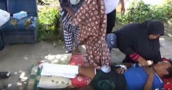 Istri Tasman, Aliyah memberikan minum kepada suaminya yang mengalami luka parah akibat diserang buaya muara. (Foto: iNews.id)