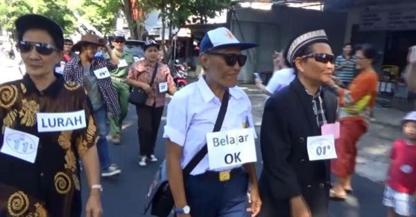 Seorang peserta laki-laki yang juga sudah lansia, tampil layaknya ibu-ibu hamil, lengkap dengan payung sambil mengepit tas. Ada juga laki-laki memakai kostum seperti pebalet dengan rok tutu dan wajah ber-make up mirip pemain pantomim. Sementara kaum perempuan lansia ada yang memakai kostum satpam dan lurah. Anak-anak pun tak mau kalah. Mereka juga memakai kostum yang unik-unik dan lucu-lucu.