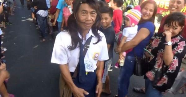 Para kaum laki-laki tampak percaya diri mengenakan pakaian perempuan dan sebaliknya kaum perempuan memakai pakaian laki-laki. Ada pula para lansia memakai seragam sekolah menengah pertama (SMP). Seorang kakek yang mengenakan seragam SMP perempuan, melengkapi penampilannya dengan wig rambut panjang dikepang.