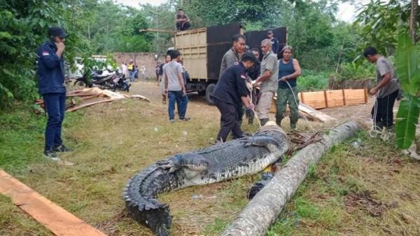 Selanjutnya, hewan dengan panjang sekitar 4 hingga 5 meter ini ditarik ke atas bak truk dalam posisi ditumpuk untuk dibawa petugas ke lokasi rehabilitasi di kawasan Bulian, Kabupaten Batanghari, Jambi.