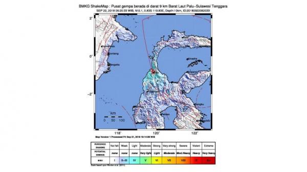 Gempa Bumi 5,1 SR Guncang Kota Palu, Tak Berpotensi Tsunami