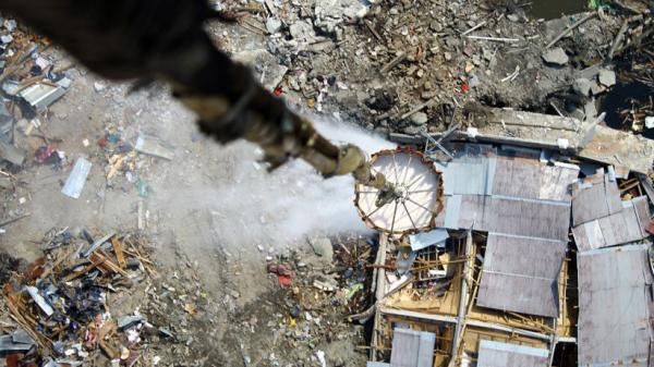Pengeboman mau pun penyemprotan disinfektan sebagai upaya antisipasi penyebaran penyakit melalui vektor seperti lalat, kecoa, atau tikus. Banyaknya korban meninggal yang diperkirakan masih tertimbun bangunan mau pun tanah mendorong upaya antisipasi tersebut.