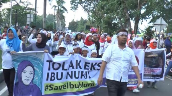 “Ini sebenarnya aksi solidaritas yang dilakukan serentak di sembilan kota di Indonesia untuk menolak eksekusi terhadap Ibu Nuril. Ini sebagai bentuk perlawanan terhadap diskriminasi dan kekerasan yang dialami Ibu Nuril selama ini,” katanya.