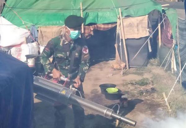 Kogasgabpad TNI Fogging Tempat Pengungsian Warga Korban Gempa Lombok