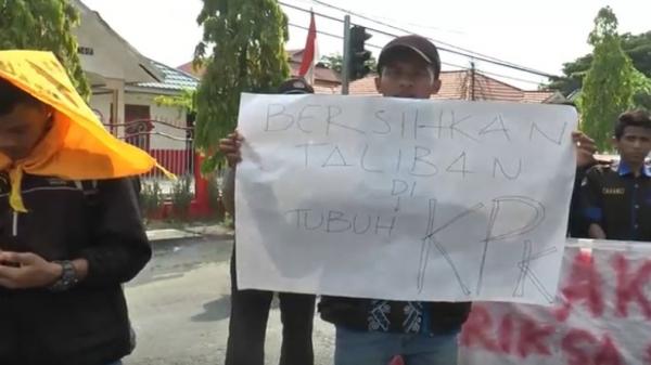 “KPK ini sudah dijadikan alat politik untuk membasmi orang-orang yang tidak bersalah. Banyak kasus besar yang belum selesai dan terkesan dibiarkan,” teriak pengunjuk rasa.