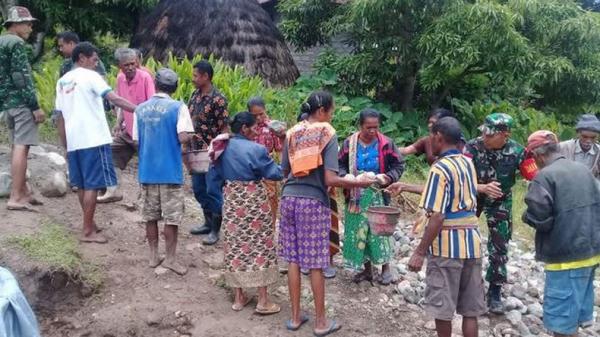 Pantauan iNews, para ibu-ibu di desa terpencil itu ikut mengangkat adonan campuran pasir dan semen. Mereka bekerja bersama prajurit TNI dalam kekeluargaan di Program TMMD ke-104 tersebut.