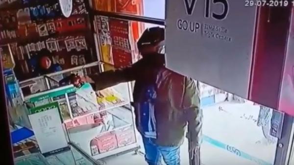 Aksi kejahatan yang dilakukan dua perampok itu terekam kamera CCTV. Sambil menodongkan senjata api, mereka mengancam korbannya dan leluasanya membawa puluhan handphone (HP) dari lemari etalase toko.