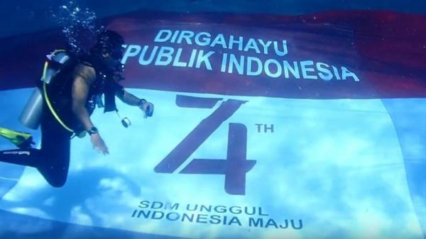 "MURI hari ini dengan bangga memberikan piagam penghargaan atas rekor pembentangan bendera merah putih terbesar di bawah laut," kata Osmar Semesta Susilo.