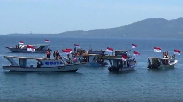 Pantauan iNews, kegiatan ini turut melibatkan 26 kapal yang membawa 300 siswa-siswi. Mereka bertugas untuk menyerahkan bendera merah putih terbesar itu kepada personel yang menyelam di dalam laut. Aksi ini disaksikan langsung ribuan masyarakat dan Forkompinda Sulut serta berbagai kalangan lainnya.
