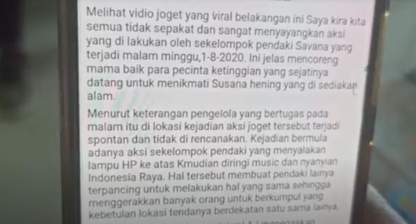 Sementara beragam kecaman yang beredar dari para netizen dicantaranya: “Melihat video joget yang viral bekangan ini saya kira kita semua tidak sepakat dan sangat menyayangkan aksi yang dilakukan oleh sekelompok pendaki Savana. Ini jelas mencoreng nama baik para pencinta ketinggian yang sejatinya datang untuk menikmati suasana hening yang disediakan alam,” kata salah satu cuitan di sosial media.