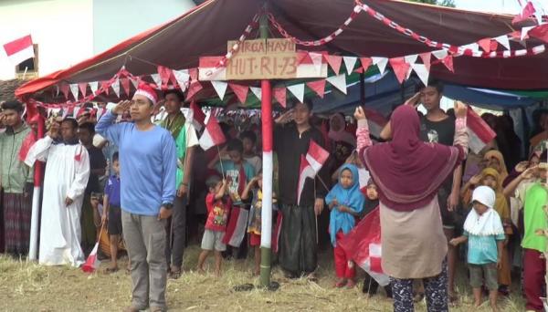 Warga Korban Gempa Lombok Upacara Kemerdekaan di Tenda Pengungsian